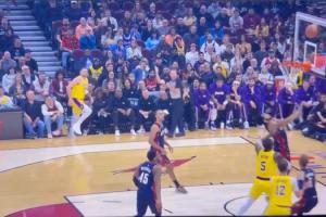 热火球员德鲁·斯密斯曾踩到骑士场边战术纸,滑下25cm的台阶: