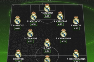 后卫:阿诺德(6.60分)、劳尔·阿森西奥(6.58分)、卡雷拉斯(6.90分)、弗兰·加西亚(6.35分)
