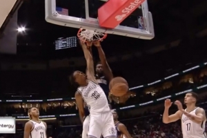 GIF-炸裂!锡安突然跳步双手隔扣克拉克斯顿!